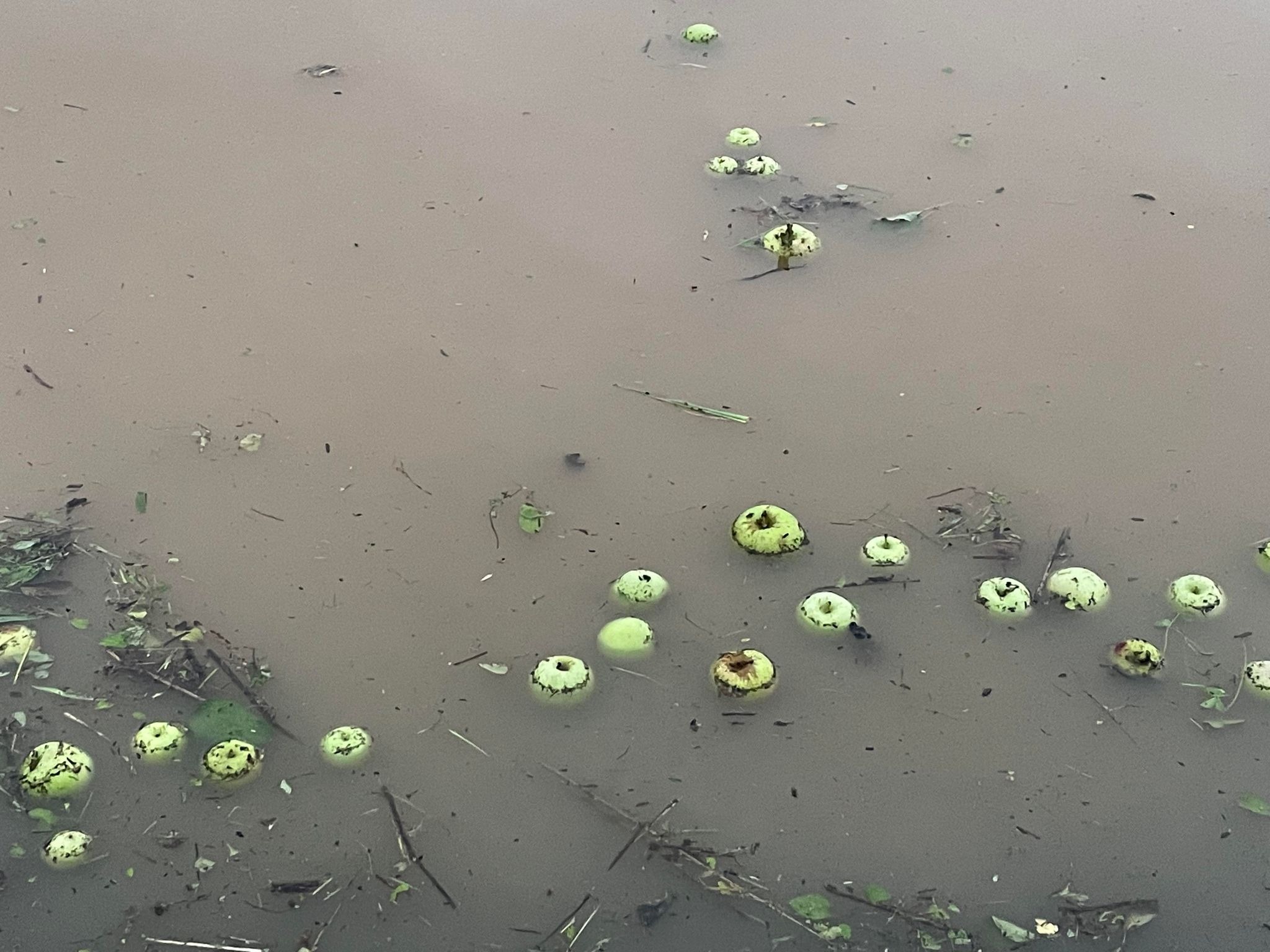 河川敷にリンゴの畑があり、そこがすべて水没していました。